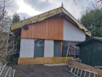 Au programme, nous réaliserons les enduits de finition à l’argile, poserons le bardage bois et aménagerons la salle de bains (isolation, frein-vapeur, plaques Fermacell, enduit mince et carrelages muraux).